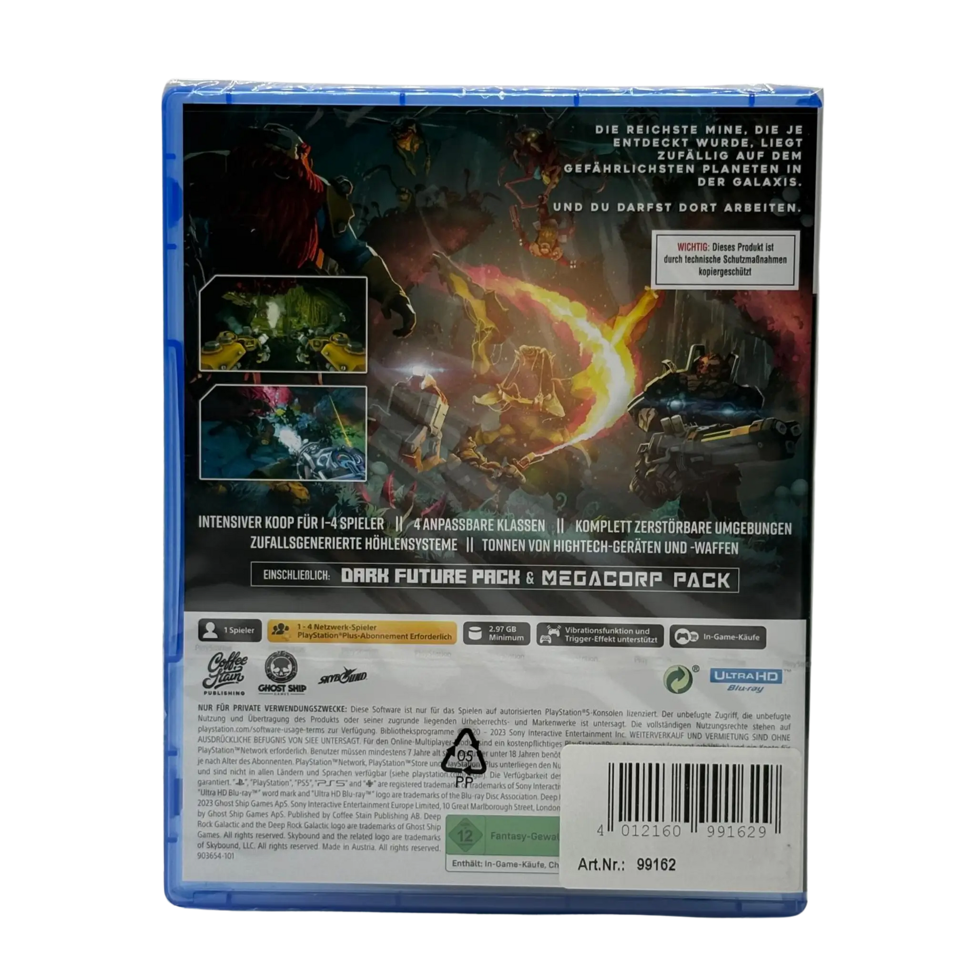 Deep Rock Galactic ist ein kooperativer First-Person-Shooter für die PlayStation 5, der Action, Teamwork und humorvolle Sci-Fi-Atmosphäre perfekt kombiniert. Schlüpfe in die Rolle eines zwergischen Weltraum-Bergarbeiters und begib dich mit bis zu drei Mitspielern in gefährliche, prozedural generierte Höhlen.