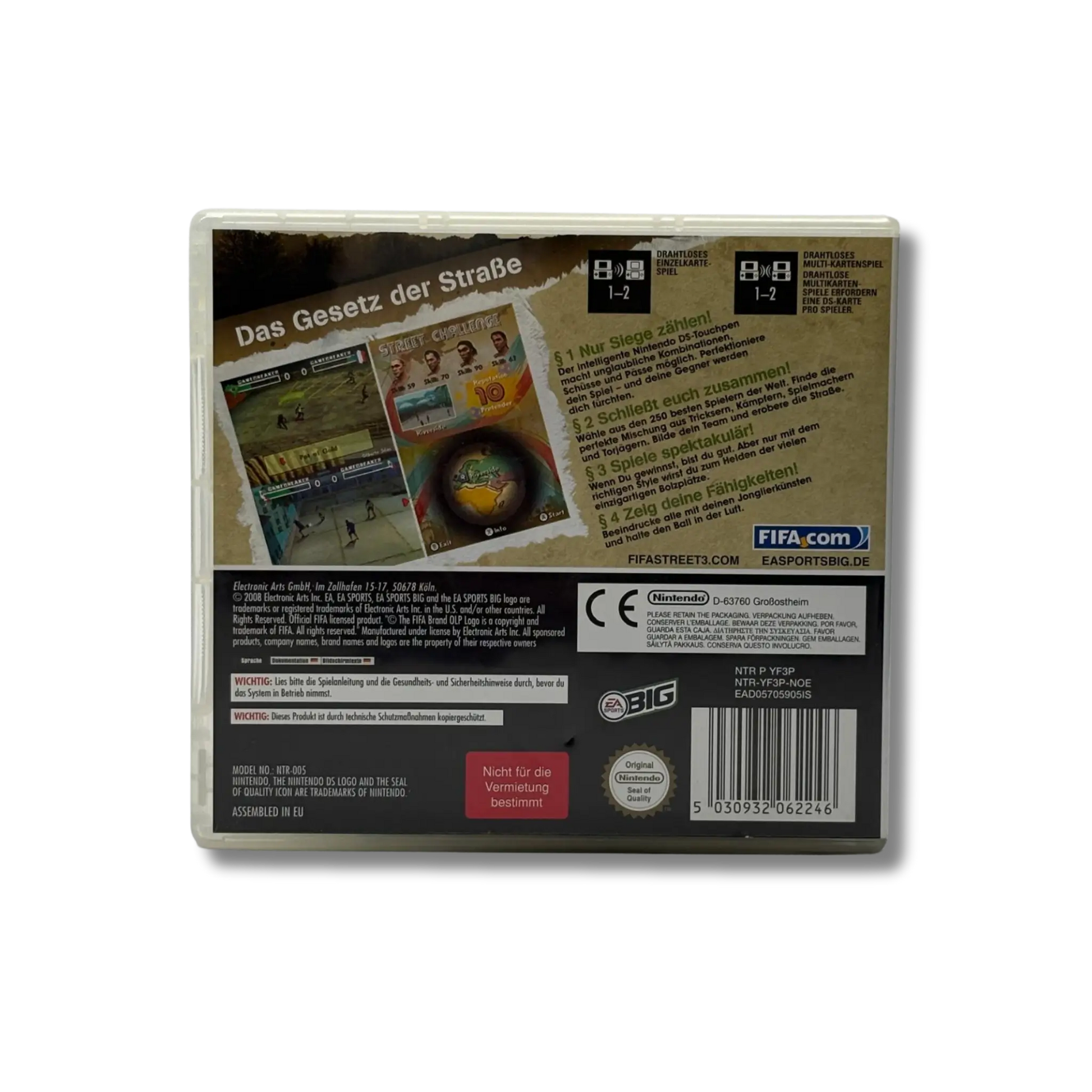 FIFA Street 3 für Nintendo DS bringt spektakulären Straßenfußball direkt in deine Hosentasche. Erlebe rasante Matches, coole Tricks und stylische Moves auf urbanen Spielfeldern rund um den Globus. Im Mittelpunkt stehen Kreativität, Technik und schnelle Ballkontrolle statt klassischem Fußball.