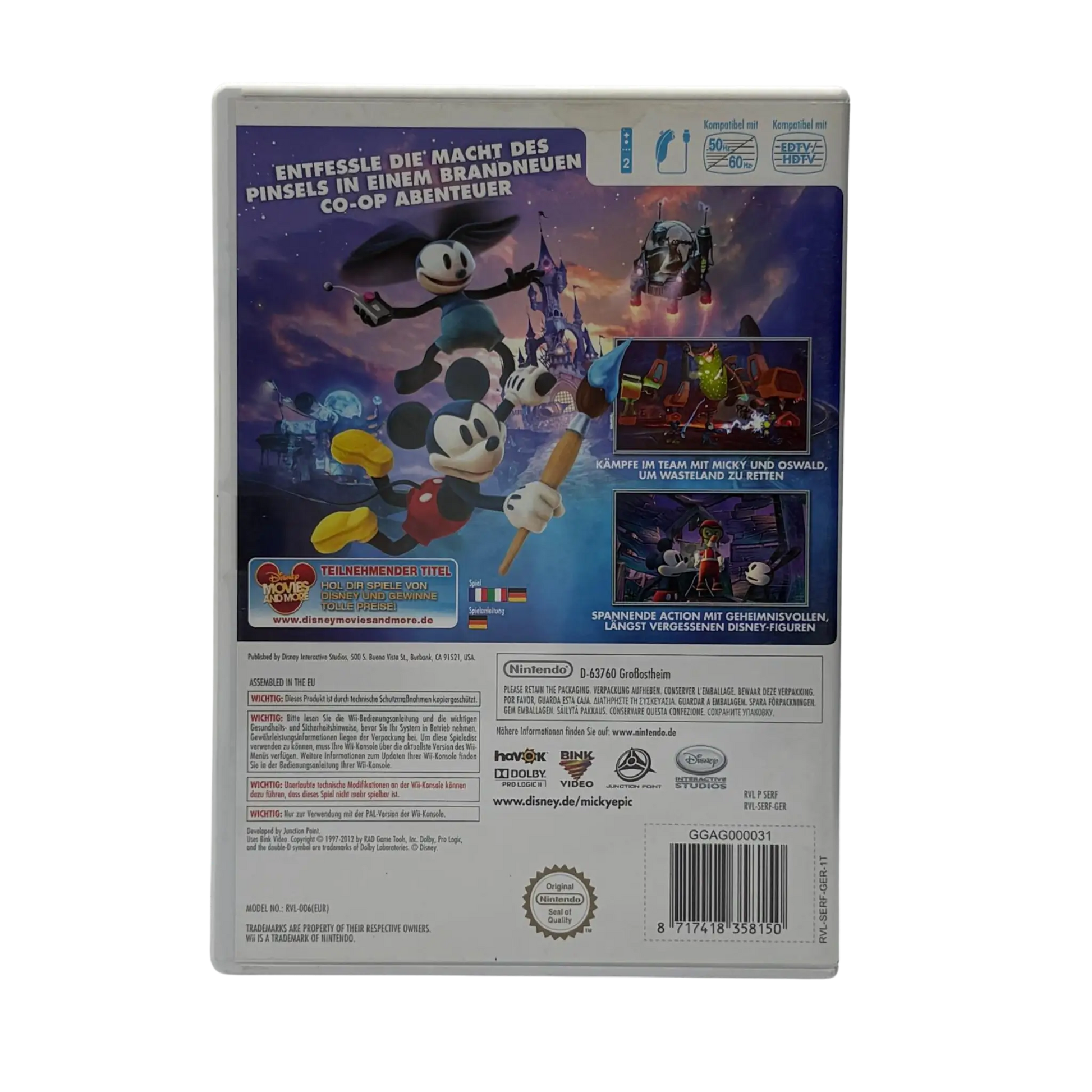 Micky Epic 2: Die Macht der Zwei für Nintendo Wii ist ein spannendes Action-Adventure im Disney-Universum. Zum ersten Mal erleben Micky Maus und Oswald, der glückliche Hase, ein gemeinsames Abenteuer in der fantasievollen Welt von Wasteland.
