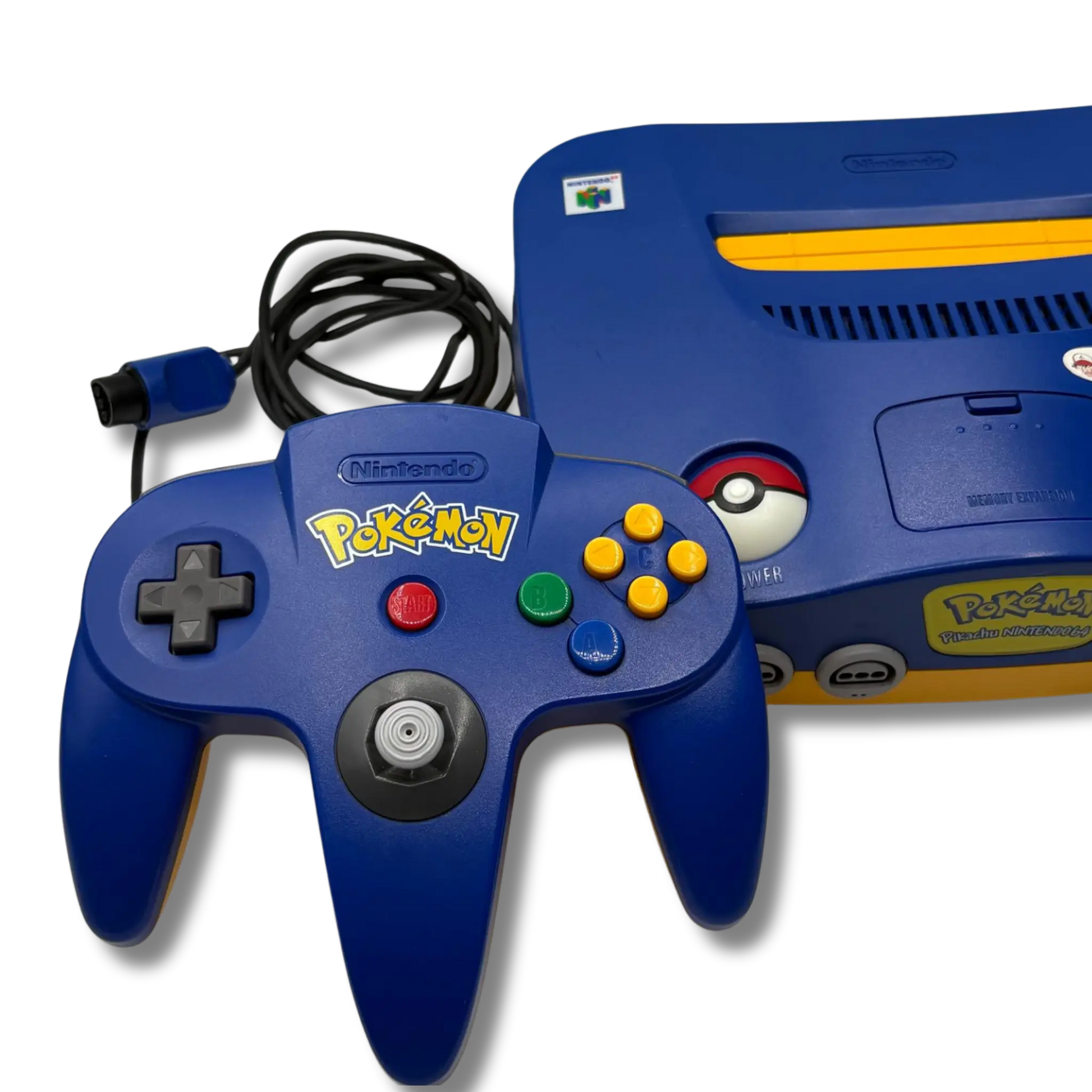 Die Nintendo 64 Pikachu Edition ist ein echtes Sammlerstück für Retro-Fans und Pokémon-Liebhaber. Diese besondere Limited Edition fällt sofort durch ihr auffälliges blau-gelbes Design und die große Pikachu-Figur auf der Oberseite der Konsole ins Auge. Mit einem leuchtenden Pokéball-Power-Schalter und einer einzigartigen Optik bietet sie nicht nur nostalgischen Spielspaß, sondern auch ein unverwechselbares Design-Highlight für jede Gamer-Sammlung.